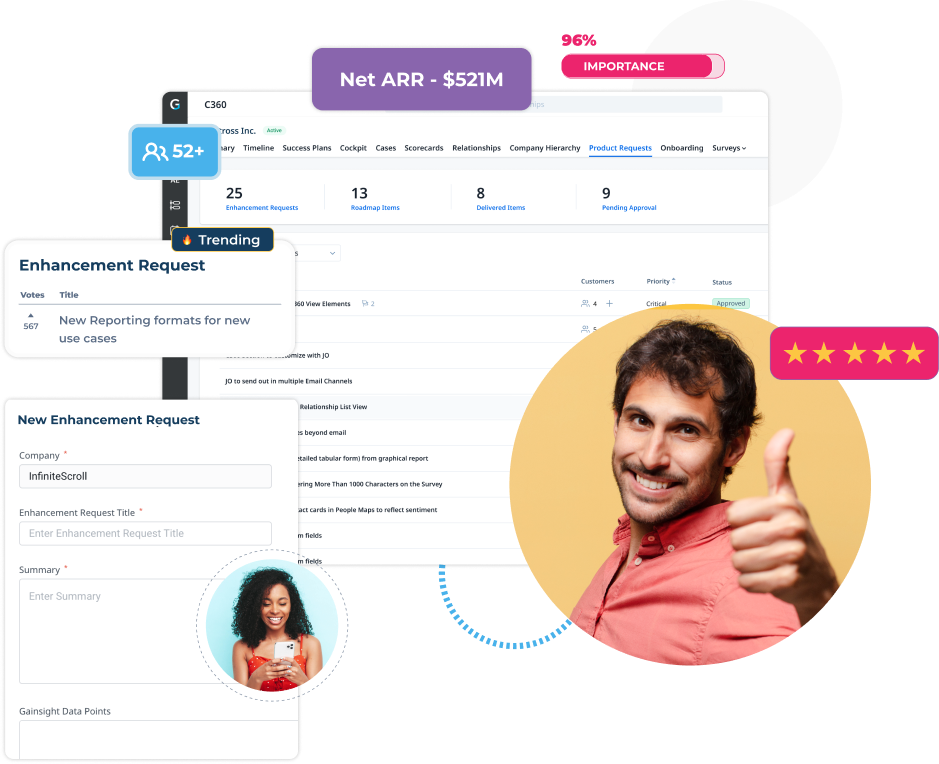 Prioritize the right roadmap investments by combining requests with customer insights like ARR, customer segment, and more.