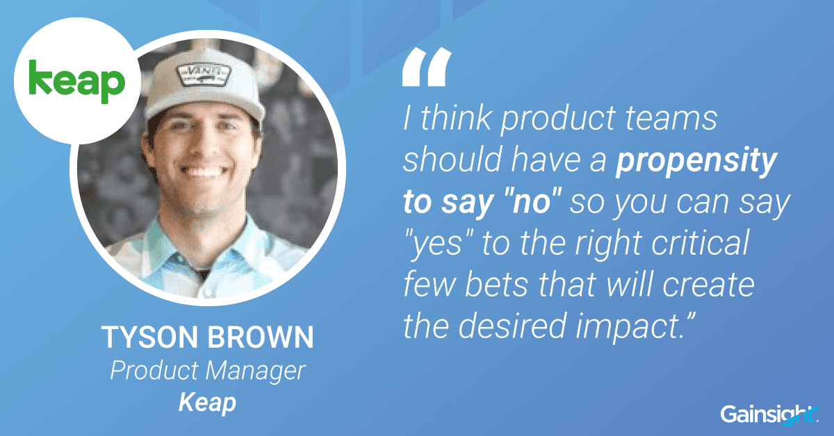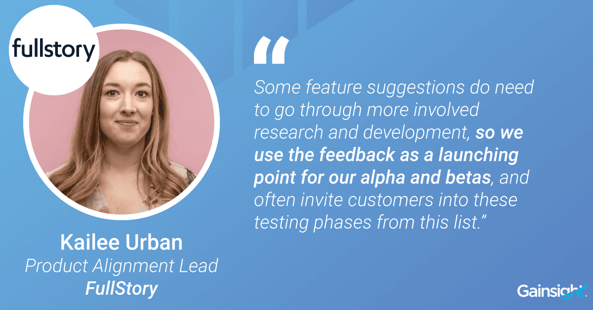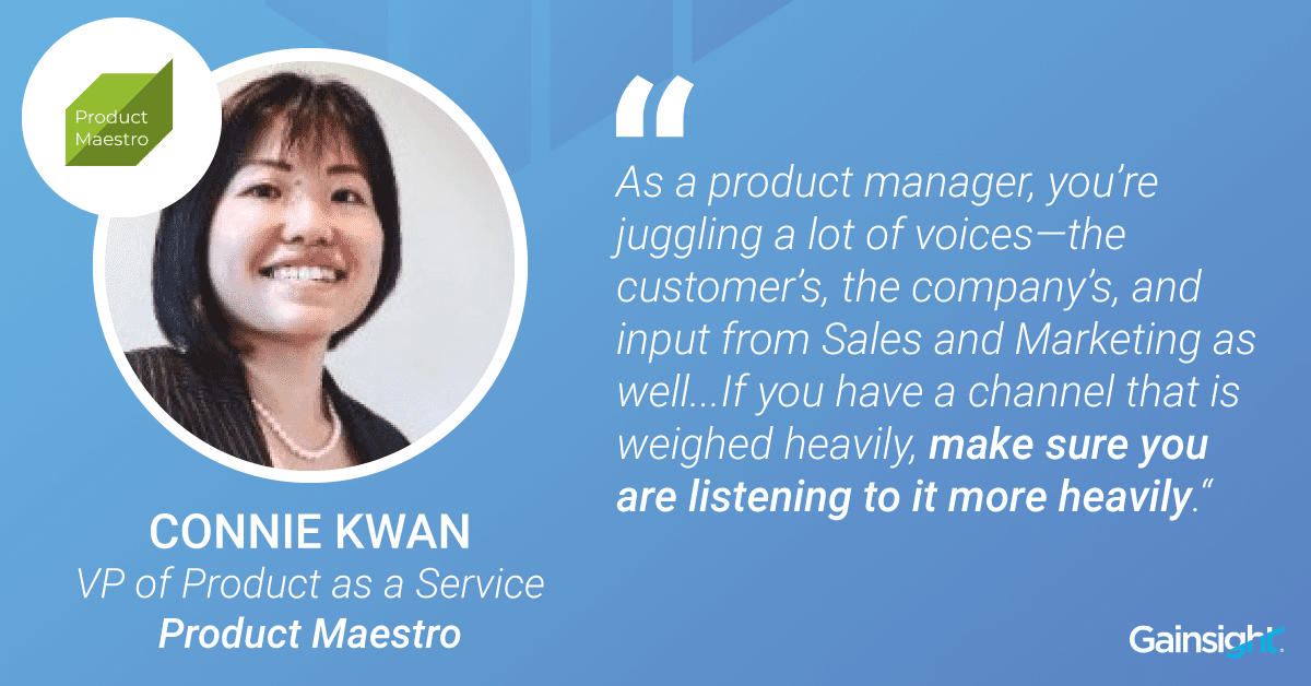 It’s not the volume of feedback you implement that matters, it’s what eventually ends up into the product that moves it forward. A lot of the feedback you see at the beginning of onboarding could be happening because they’re not fully adopted yet. That’s where aligning customer success and product is super helpful because they can work together with the customer to address certain knee-jerk reactions that come with change management.