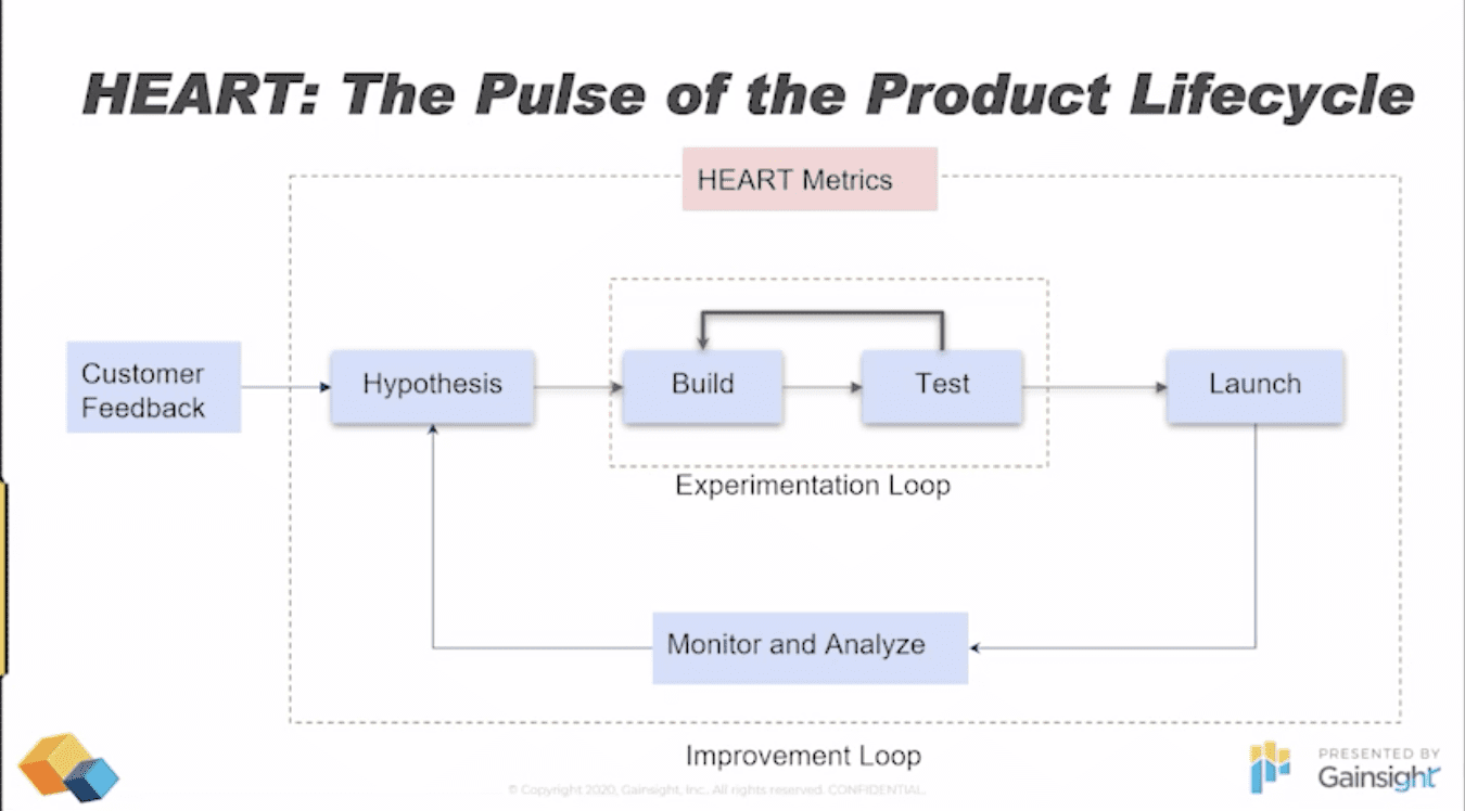 “You have to think beyond the traditional product development cycle,” says Sid, who has appended this process with a methodology of qualitative measurement known as HEART: short for Happiness, Engagement, Adoption, Retention, and Task Success. It provides a deeper view into the user experience: Users may have high adoption and task success, but low happiness and engagement, and thus be a churn risk—and a treasure trove of information on how to improve the product.
