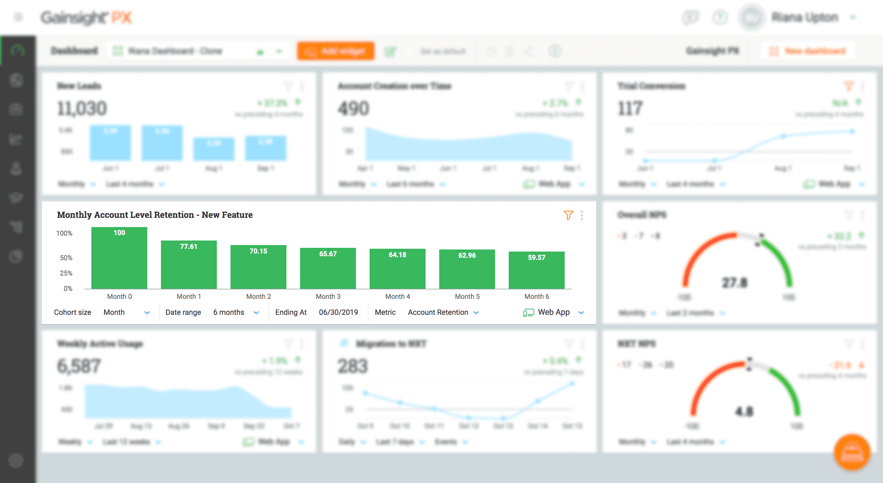Throughout this blog post, I’ll share examples of the Gainsight PX dashboard that we show to our board members. You can make this article into an interactive experience by starting a free trial of Gainsight PX and playing around with these dashboards yourself!