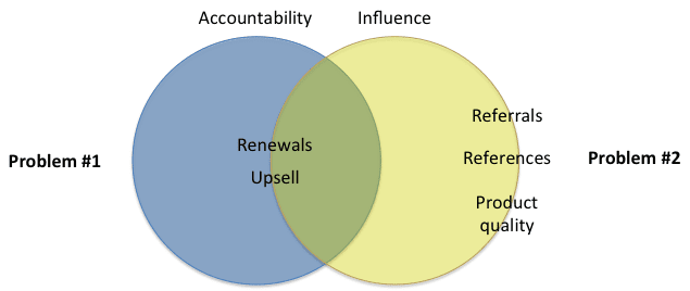 A Venn diagram can illustrate Problems #1 and #2. I’ve shown two examples below: one for CSM and one for Sales.