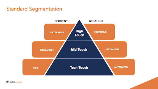 It is not uncommon for companies to transition customers to varying segments, especially during an economic downturn. The expectation to do more with less has companies reallocating and stretching internal resources. They also want to protect their customer base by placing a renewed and focused emphasis on particular segments within the base. That means improving or increasing their customer success managers (CSM) ratios for their top Annual Recurring Revenue (ARR) customers, especially those at an enterprise level.