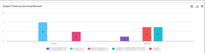 - View health data: From a management perspective, the team uses Reports and Dashboards to identify customers who are actively engaged with Support using Health Scores so that we can determine where we might need to invest more time or resources.