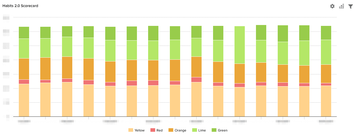 There are many more dashboards within Gainsight that our executives check on a frequent basis. In this instance, they’re able to get a holistic view of the business over time by examining the cross-section of Health Scores across our customers for Habits (our health measure that tracks sticky adoption).