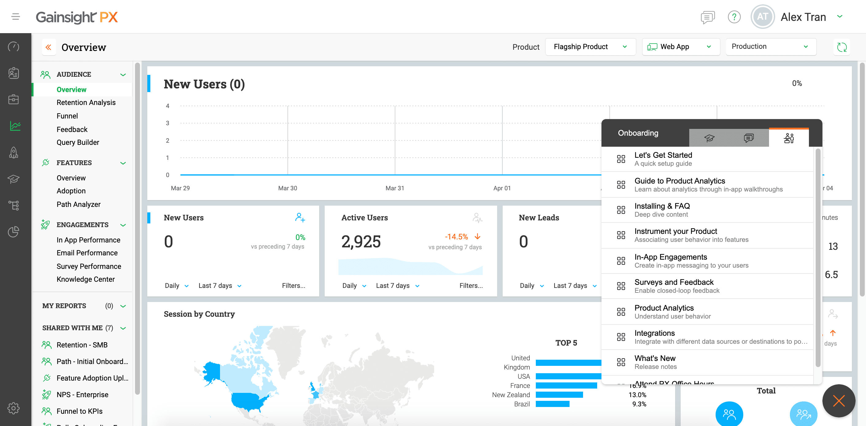 The Gainsight PX team uses in-app guides to highlight key features that best address new users’ most common questions, which have been a crucial part of onboarding customers at-scale and pointing them to the features most helpful to them.