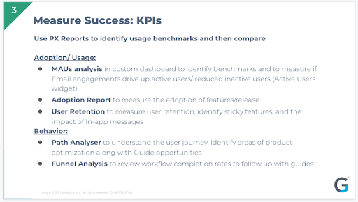 That said, it takes quite a bit of time and investment to develop an effective onboarding strategy. It often requires a lot of research and optimization to deliver positive results. That’s where a tool like Gainsight PX can help minimize your time to market and costs because it provides turnkey solutions that allow you to personalize and automate the onboarding process in several ways, including: