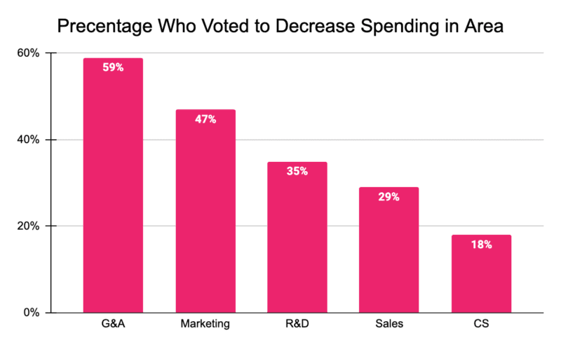 This graph shows aggregated votes from all CEOs, like the last one. Across the board, every pool of respondents decided that G&A was most likely to be cut.