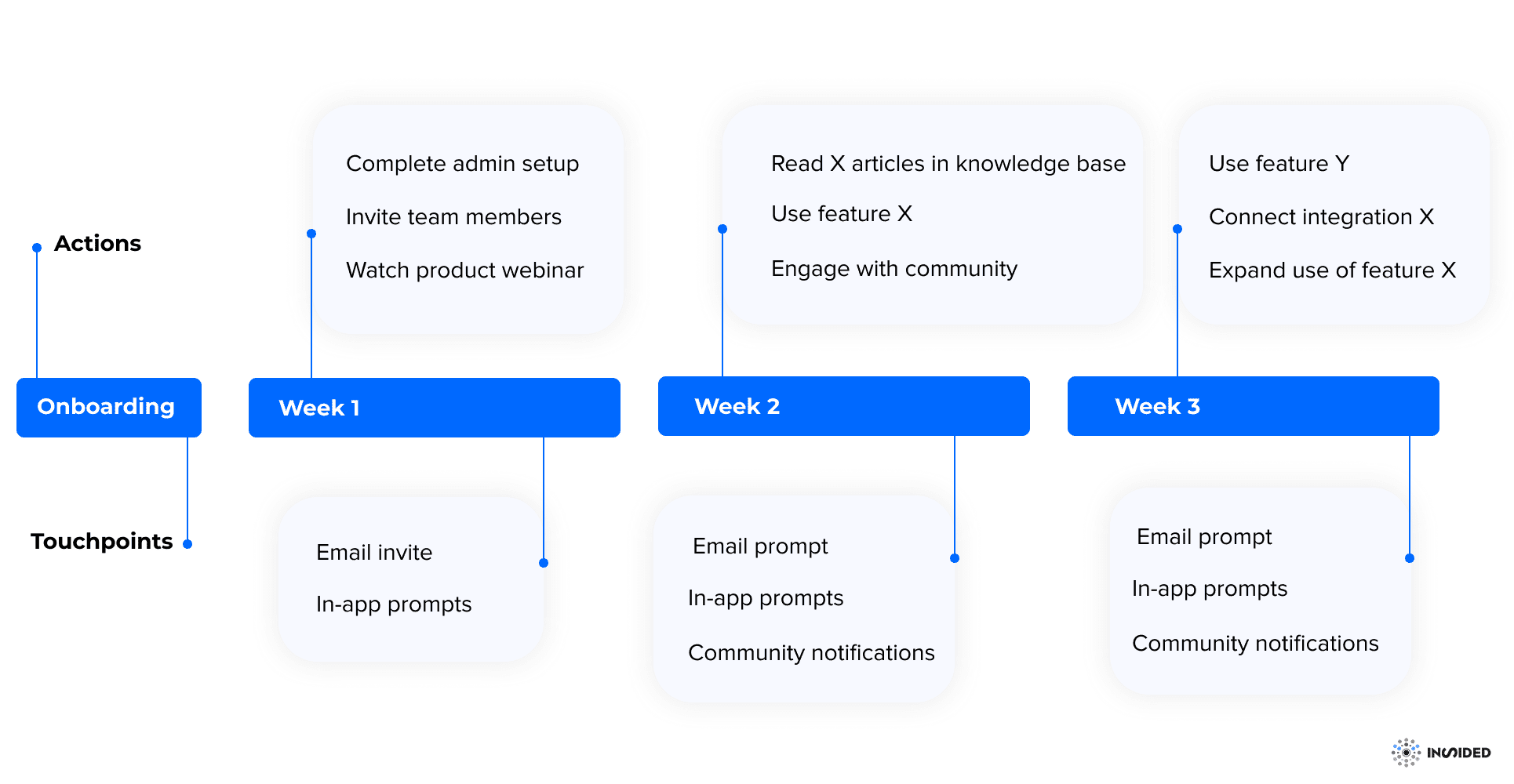 Knowing this, you map out the automated touchpoints that will guide your customer through the onboarding experience in a way that helps them realize value faster.