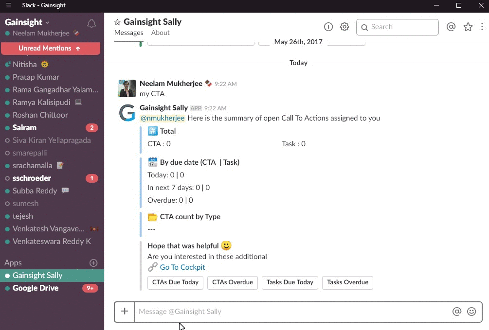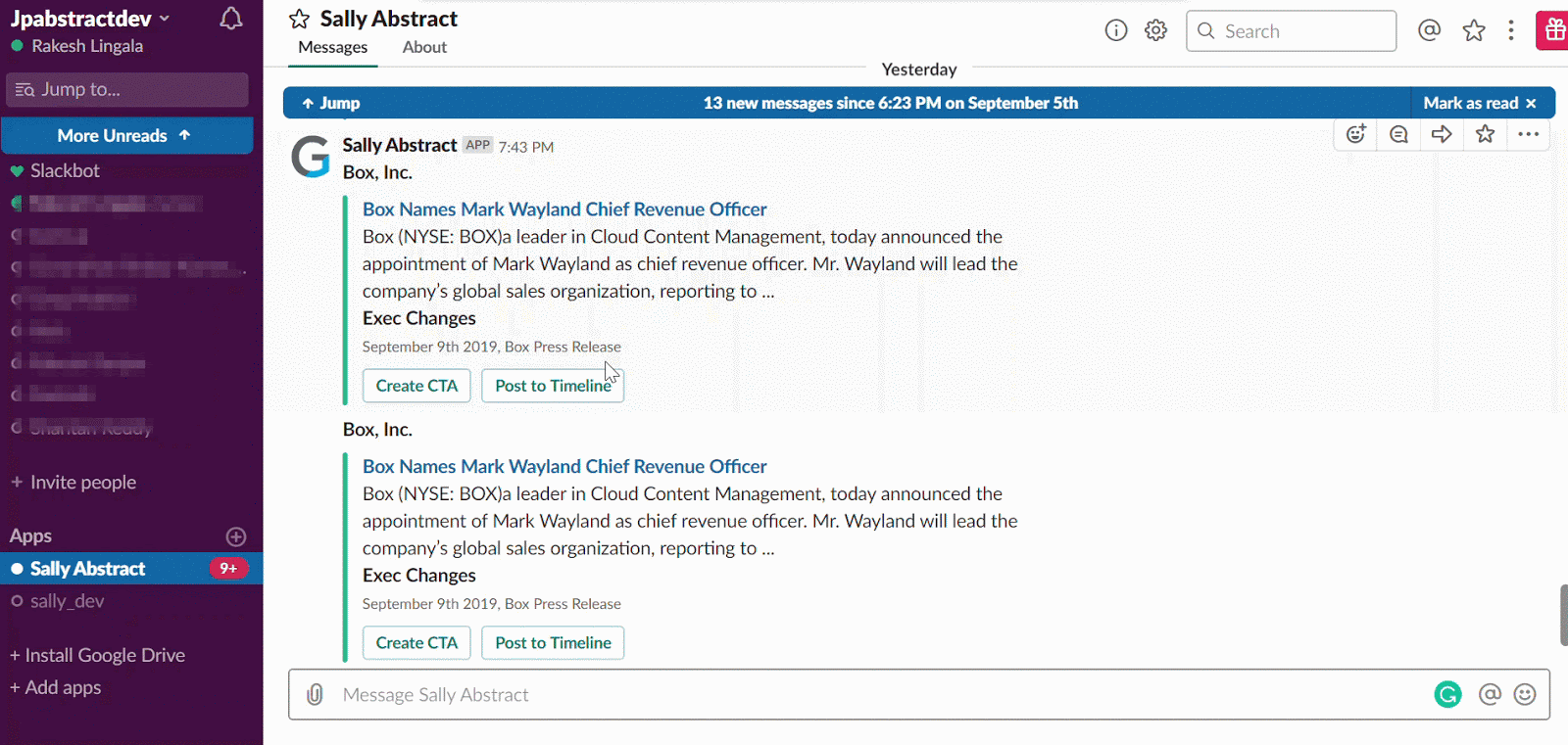 Use the Company Intelligence feature in Gainsight to track news about your customers related to funding, executive appointments and departures, new product launches, etc. and push them to Slack.