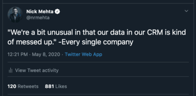 Companies shrug off the problem by saying “yeah, our data is messed up,” as if the problem we are describing is rocket science. It’s not.