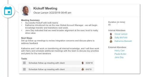 It’s important to ensure that every customer-facing team has a common understanding of the recent customer interactions. This needs to be done in a way where end users enjoy capturing those interactions, otherwise the insight remains in offline sticky notes and other notetaking platforms on CSMs’ laptops. You need to be able to filter all those notes to make sure you have an understanding of the most recent adoption and deployment related updates.