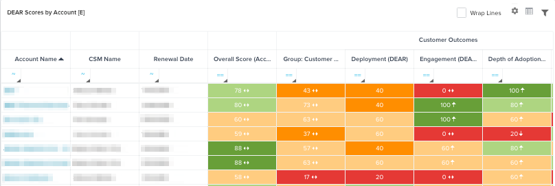 - This is an easy view of all accounts managed by specific segment/CSM and their deployment and adoption scores.