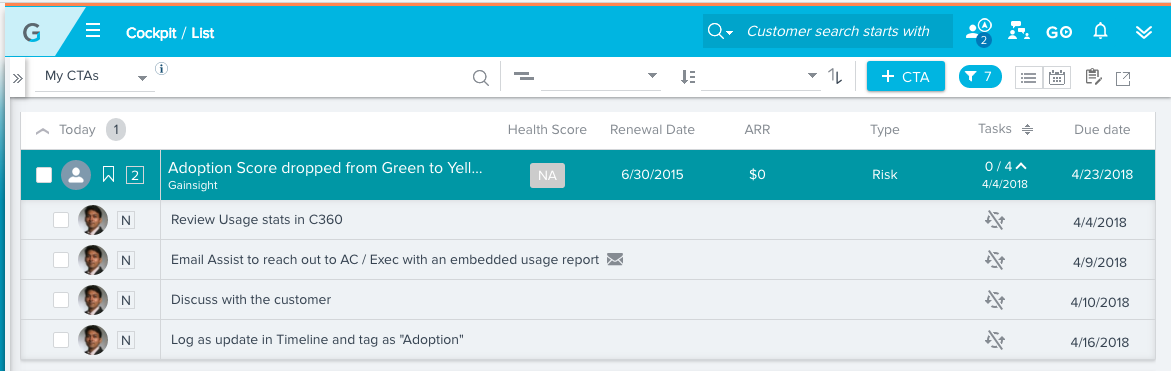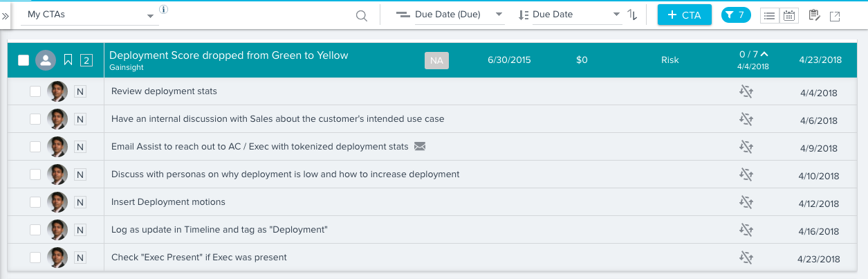 Note: You should look to add efficiencies to the end users’ playbook. Two quick ways would be to 1) Include Email Assist: These are templatized emails that CSMs can send (with edits) directly from their Call to Action (CTA) and 2) Include Linked Objects: If you expect CSMs to go into Salesforce.com to see commonly viewed Account attributes (e.g., Cases, Opportunities, etc.), show them in the CTA itself and save a few clicks.