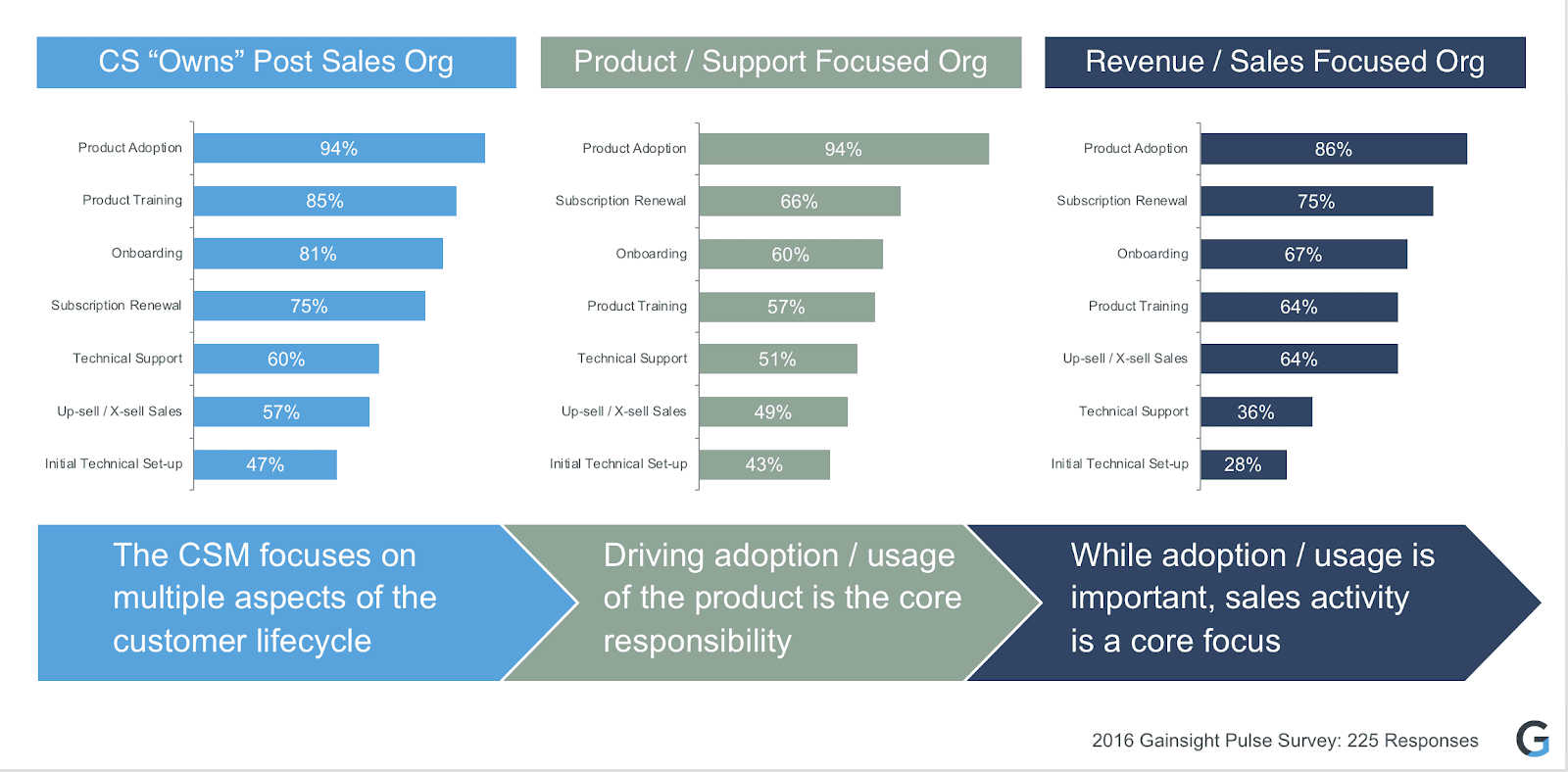 Look at the third category: Product Adoption is ahead of even Subscription Renewal in a revenue-focused organization! Clearly adoption is of prime concern to Customer Success leaders with all types of charters.