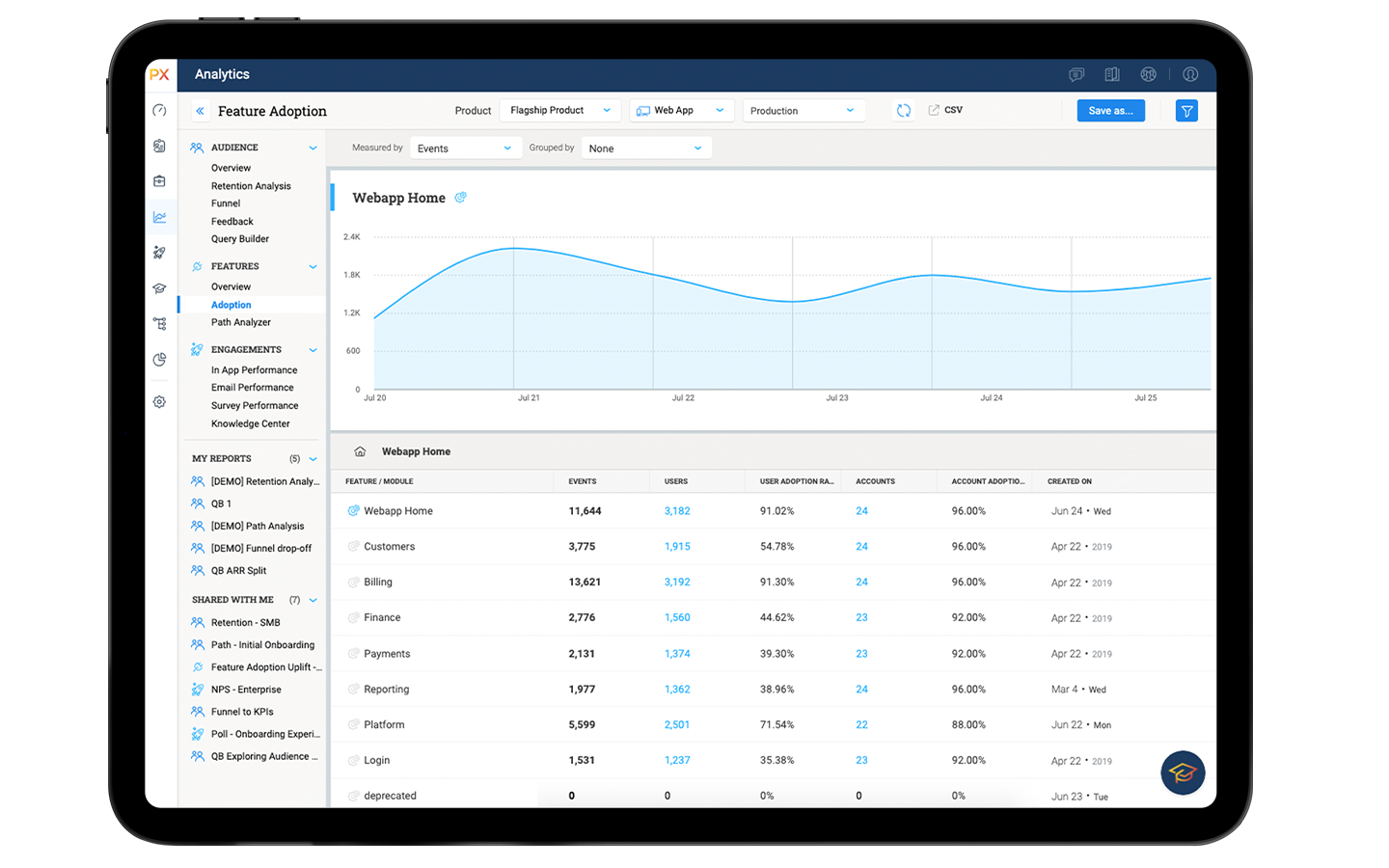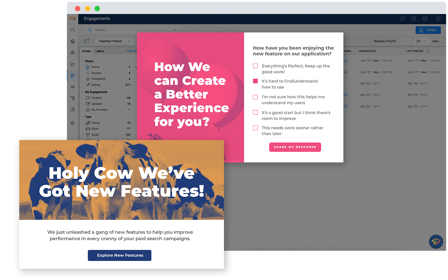 Gainsight PX’s combines deep SaaS product analytics with personalized in-app engagements to deliver exceptional user experiences.