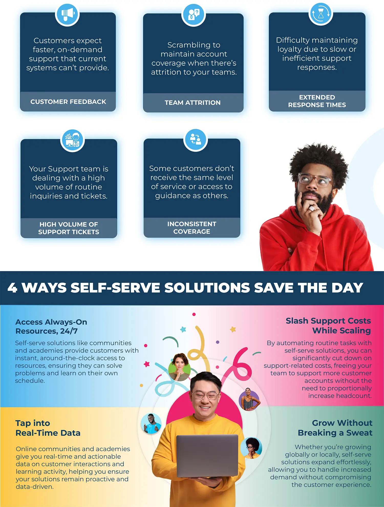 Struggling to keep up with support tickets? Drowning in the same old customer questions? It’s time to let self-service do what it does best—handle the basics while you tackle the big stuff. Scale faster, free your team from the grind, and give your customers the independence they crave. Ready to level up, or are we sticking to the stone age?