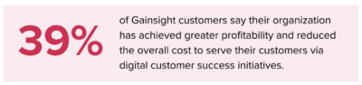 Gainsight’s customer Swoogo is an excellent example of how to effectively integrate Customer Success into the revenue team. Under the leadership of its CRO, Swoogo utilized Gainsight to unify its view of customer health and improve their churn mitigation process. The collaboration between CS and sales helped Swoogo identify expansion opportunities, resulted in a 15% increase in customer health scores and created a 7-point boost in Gross Revenue Retention (GRR) in the first year.