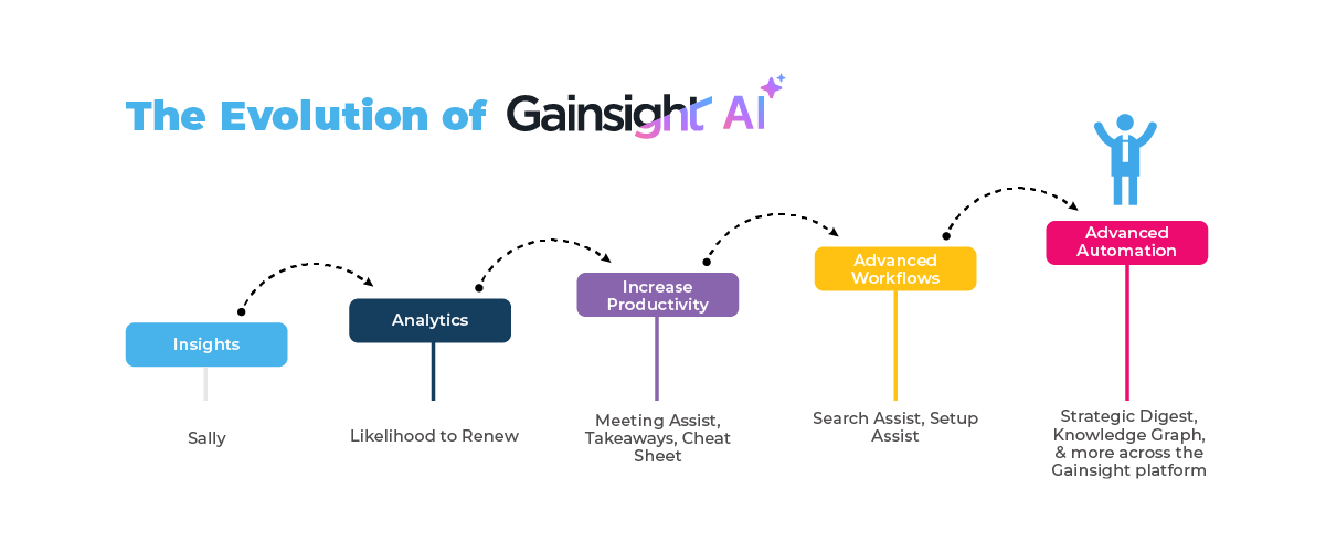 It can also enhance how we understand information, and sort through the ‘noise’ of customer data and inputs. Denise Stankowski, Gainsight’s VP of Product Management, captured how AI can help lift the burden off of CS teams—from the individual contributor to the CS leader.