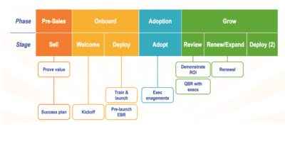 A great place to begin is by understanding your customers’ lifecycle. Many organizations don’t take the time to map out the various steps a customer experiences while engaging with their products. It’s critical to understand this journey to clearly see how the customer receives value and solves pain points with your products. It also helps to identify potential risks that can happen along the journey, and how you can keep the customer on track for successful adoption and renewal.