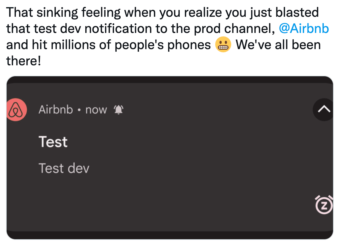 The message below is a reaction on Twitter to such a mistake by Airbnb in 2022.