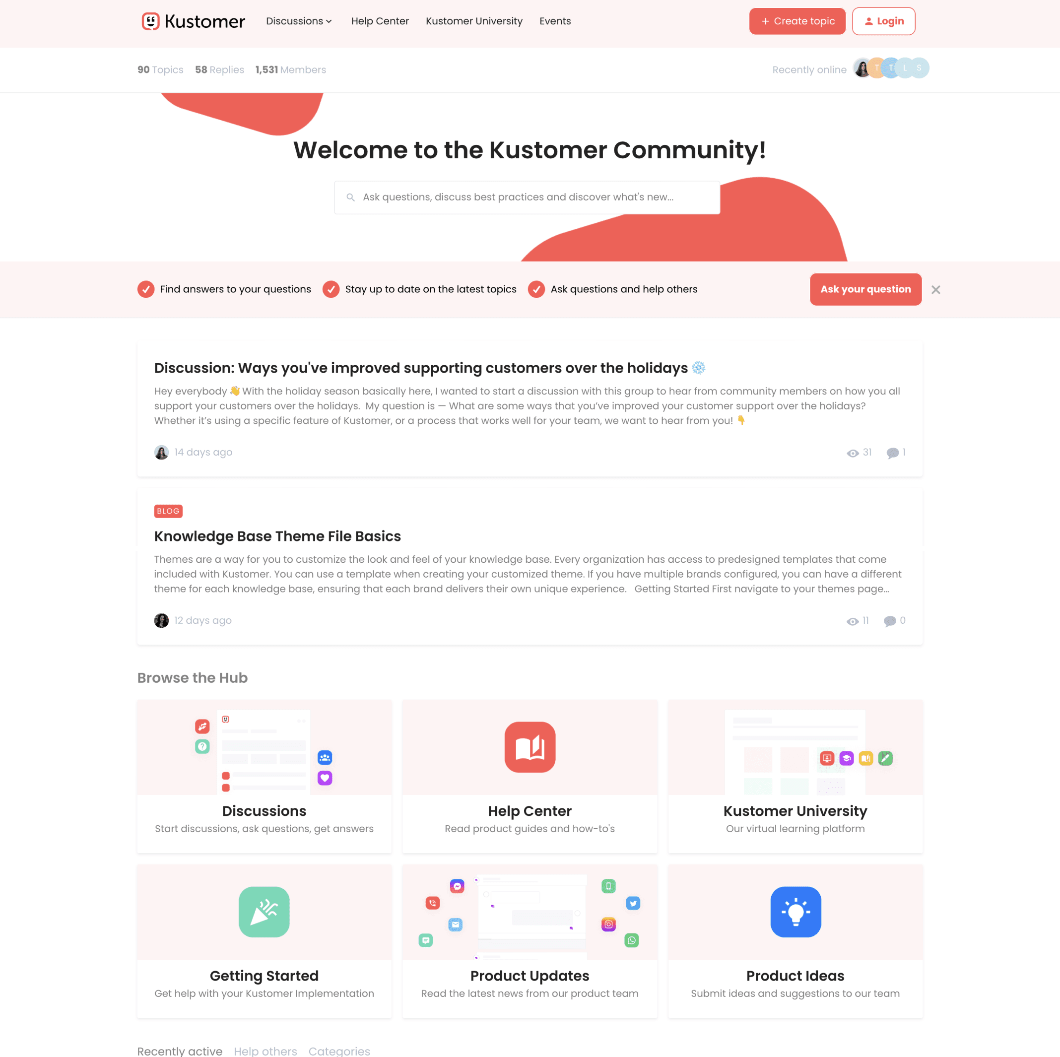 Check it OutCreate a single destination for your customers to connect, share best practices, provide feedback, and build a stronger relationship with your product.