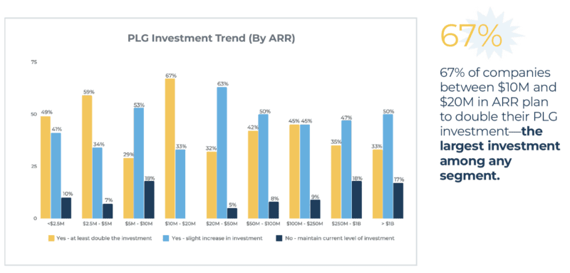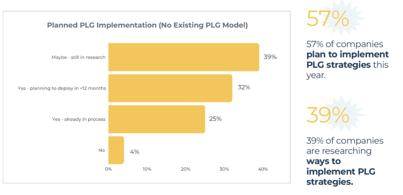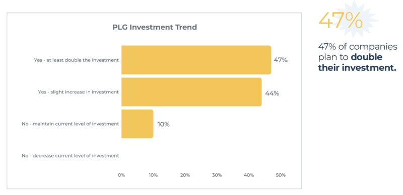 - 91% of companies adopting PLG plan to increase their investment in PLG. 47% plan to double their investment.