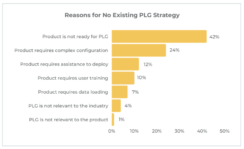 42% of respondents without PLG strategies cite product readiness as the primary reason.