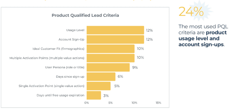 The criteria for a PQL are highly variable. Only 24% of respondents agreed that usage level and account sign-ups were important criteria for identifying PQLs.