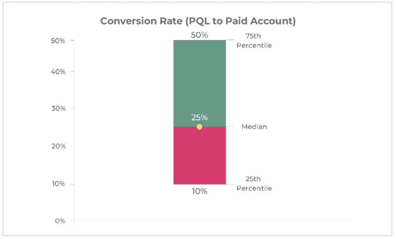- Free trials using Product Qualified Leads (PQLs) convert to paid customers on average 25% of the time. Compared to only a 9% conversion rate (median) from free accounts to paid accounts, companies using PQLs see better results and improved sales opportunities.