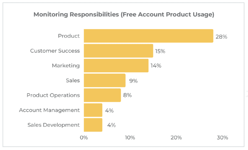 The Product organization is responsible for monitoring free account customers in 28% of cases and converting free accounts to paid in 18% of cases.