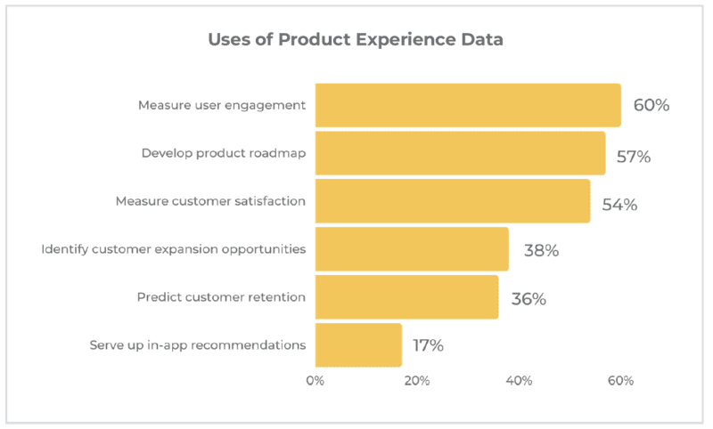 - Of companies that use product experience data, 57% use it to develop product roadmaps. More and more we’re seeing that the best product teams don’t hedge bets—they use data to define their decisions.
