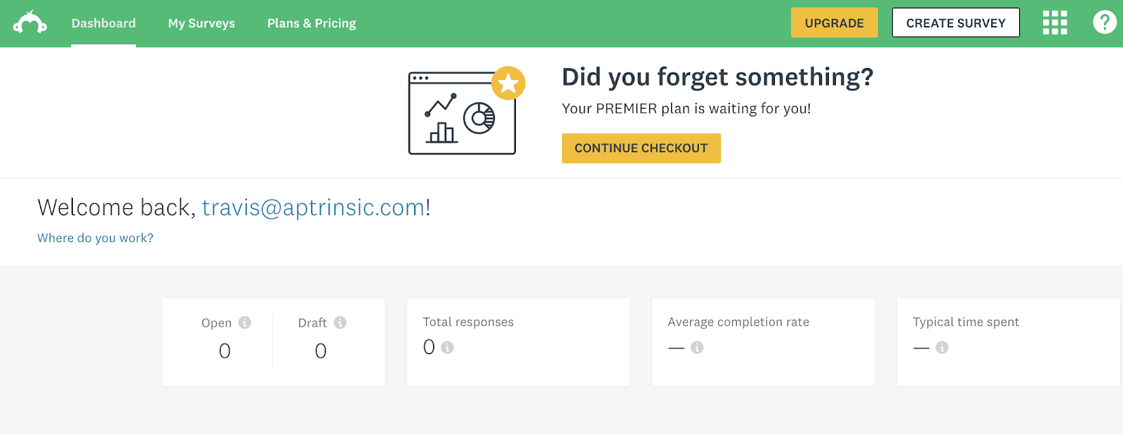 SurveyMonkey is the poster child for product-led growth. Anyone can use SurveyMonkey to create a free survey but if you want to unlock more powerful features and analytics, you have to pay. The question is, how do you push someone from a free trial to a paid contract? Four words: perfectly timed in-app engagements.