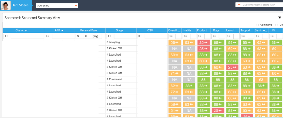 You might have noticed in the image of the 8 scorecard categories (copied again below) that a member of our executive team owns each category. For example, our VP of Sales makes sure that our account executives are selling to customers that are ready for Gainsight; our VP of Engineering oversees his team’s efforts to resolve any bugs that may arise.
